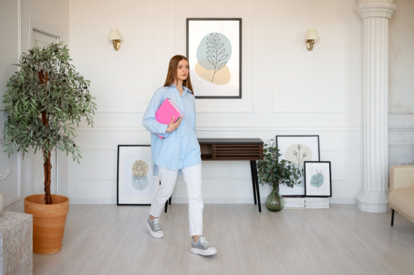 Αν το φόντο είναι ουδέτερο, μπορείς να παίξεις με τις μικρές πινελιές. Ένα χαλί σε γήινους τόνους, ένα μικρό φυτό με πράσινο φύλλωμα ή ένα καδράκι με αφαιρετικό σχέδιο είναι αρκετά για να «ζεστάνουν» τον χώρο χωρίς να τον φορτώσουν.