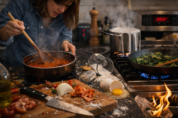 Υπάρχουν μέρες που η κουζίνα μοιάζει με αγώνα ταχύτητας. Πεινάς, έχεις δουλειές, το τηλέφωνο χτυπά και το μόνο που θέλεις είναι να τελειώνεις γρήγορα. Το «μαγειρεύω στο πόδι» όμως σχεδόν πάντα κοστίζει. Όχι μόνο στη γεύση, αλλά και στην ποιότητα του φαγητού.