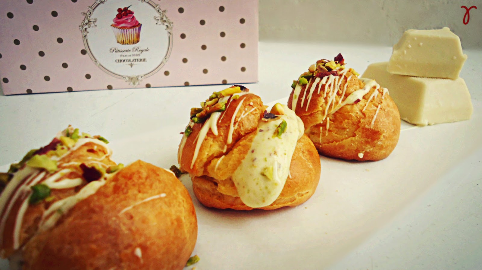 Ανοίγουμε ένα ένα τα σου, γεμίζουμε με την μους και γαρνίρουμε με λιωμένη σοκολάτα και τριμμένο φυστίκι Αιγίνης.