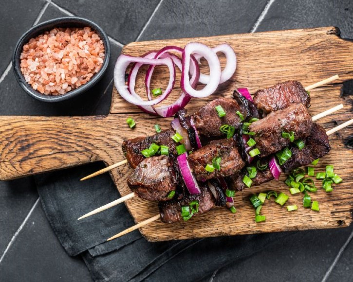 Το μοσχάρι δεν είναι συνηθισμένη επιλογή για σουβλάκια στο σπίτι, ωστόσο το μαρινάρισμα στον πολτό των ακτινιδίων θα τα μαλακώσει και θα τους δώσει πολύ ιδιαίτερη γεύση.