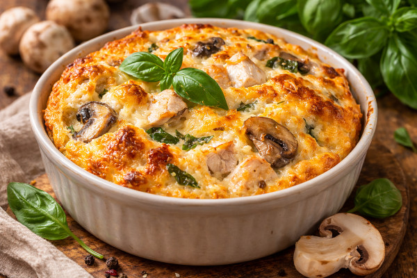 Αυτό το αέρινο σουφλέ με κοτόπουλο και μανιτάρια γίνεται εύκολα και φέρνει στο πιάτο σου γεύση, νοστιμιά και θρέψη, ξυπνώντας σου τις πιο απολαυστικές αναμνήσεις από τα σουφλέ της μαμάς.