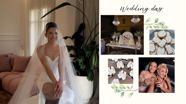 Η Ιωάννα Τούνη είχε φροντίσει η κάθε λεπτομέρεια να προσδίδει λευκή... χλιδή, από τα Dior δώρα για τη νύφη μέχρι τα πασουμάκια για τις maid of honor, τις κρεμάστρες ακόμα και τον μπουφέ με μπισκότα που είχε το αρχίγραμμα της Στέλας και του Σωτήρη.