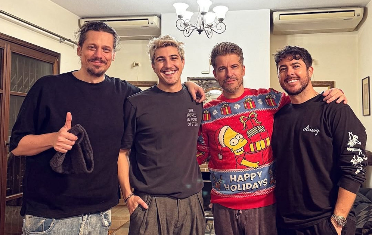«Για όσους ζήτησαν ΠΛΗΡΗ απαρτία! Ένας παππούς. Οι Τέσσερις γιοι του. Τα Τέσσερα εγγόνια του. Οι Τρεις νύφες του. Και δύο σκυλιά (στη φωτό μόνο το ένα). Έτσι το γιορτάσαμε. Καλά Χριστούγεννα. ΥΓ. Σχεδόν ντε ζαβού φωτό με αυτή του καλοκαιριού» έγραψε.