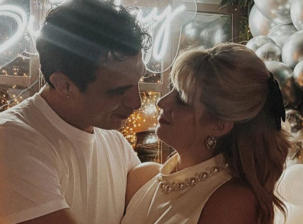 Το ζευγάρι ήταν matchy matchy ντυμένο στα λευκά με μαύρες πινελιές ακριβώς όπως η τούρτα τους και δεν έκρυβε τον έρωτά του, λίγους μήνες μετά τη γέννηση του δεύτερου γιου τους.