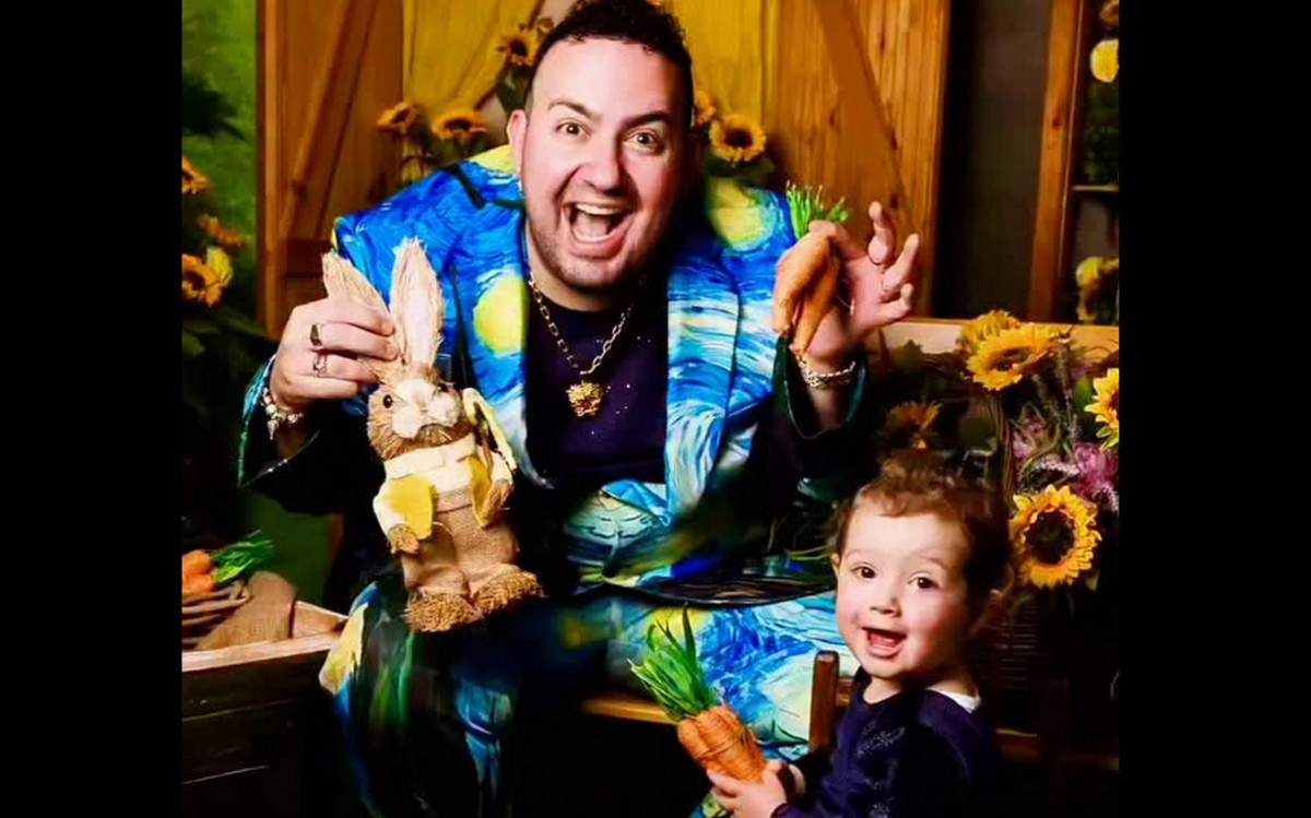 Αυγουλάκια, λαγουδάκια και λουλούδια σε μια ανοιξιάτικη και Πασχαλινή υπερπαραγωγή, Και ήταν και οι δύο υπέροχοι, Αλλά αυτό που μας τρέλανε -εκτός της μικρής και του κεφιού που πάντα έχουν- ήταν το κοστούμι που φορούσε ο Μαυρίκιος και που ήταν το διάσημο έργο του Vincent Van Gogh, Starry Nights σε print υφάσματος με σακάκι και παντελόνι.