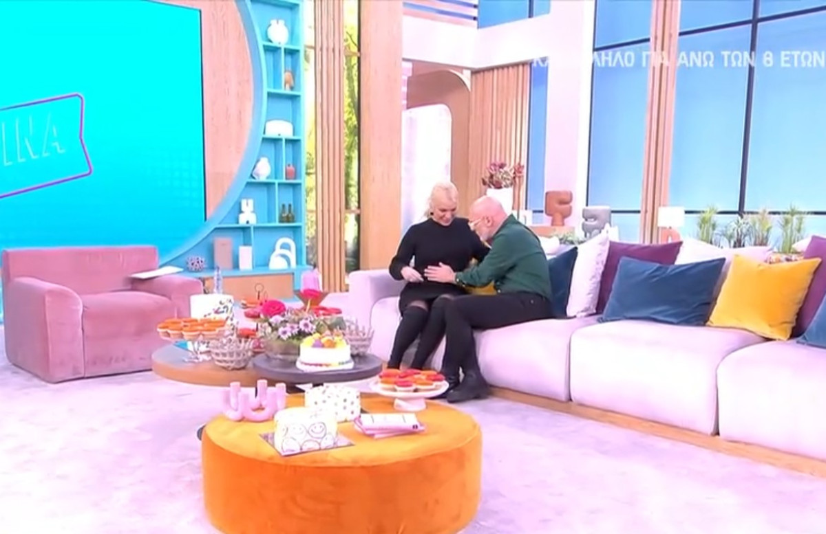 Λίγο πριν ξεκινήσουν να μιλούν, η Κατερίνα θέλησε να της δώσει λίγη καλή ενέργεια ο Νίκος Μουτσινάς, ο οποίος πλέον ασχολείται και με τις ενεργειακές θεραπείες. Έτσι, παρότι δεν αφήνει να της πιάνουν την κοιλιά, σηκώθηκε και κάθισε δίπλα του για να την αγγίξει.
