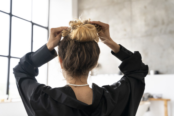 Η σωστή λύση: επιλέξτε απαλά χτενίσματα με ήπια λαστιχάκια (σατέν, χωρίς σιλικόνη), μόνο τόσο όσο χρειάζεται για να συγκρατηθούν.