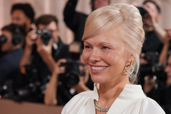 Καθισμένη δίπλα στην Τέσα Τόμσον, σχεδόν κρυμμένη πίσω από μια XXL φράντζα, η Πάμελα Άντερσον εμφανίστηκε με ένα χτένισμα που ισορροπεί ανάμεσα στο vintage και το απόλυτα σύγχρονο. Το κούρεμά της; Ένα μεσαίου μήκους, έντονα φιλαρισμένο καρέ, σχεδόν ατίθασο. Τα μήκη άγγιζαν τους ώμους, ενώ το επάνω μέρος του κεφαλιού είχε πιο κοντά layers, δημιουργώντας αέρινο όγκο. Το απόλυτο highlight ήταν αναμφίβολα η φράντζα. Μακριά, πυκνή και ανάλαφρη, έπεφτε σκόπιμα πάνω στα μάτια, θολώνοντας το βλέμμα και προσδίδοντας μια μελετημένη αίσθηση ανεπιτήδευτης κομψότητας που ορίζει τη μοντέρνα πλευρά του κουρέματος. Το styling περιλάμβανε απαλούς, ρετρό κυματισμούς, παραπέμποντας στο γκλάμουρ της δεκαετίας του ’70.