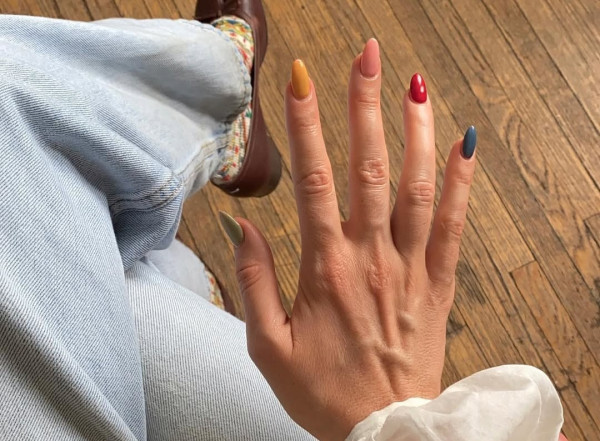 Το look είναι τόσο καλό που μπορείς να το αντιγράψεις αυτούσιο, αλλά ταυτόχρονα αποτελεί και ισχυρή απόδειξη υπέρ του να βάψεις κάθε νύχι διαφορετικό χρώμα (ιδανικό για τη σεζόν των γιορτών που έρχεται).